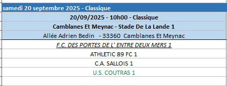 STADE DE LA LANDE 1 33360 Camblanes et meynac - de 10h30 à 12h
